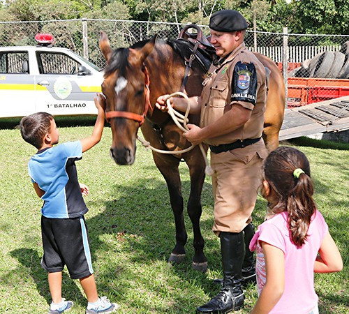 A tarde foi marcada por momentos de grande descontração e alegria, com apresentações com os cães de faro do canil do 1º BPM, visita nas dependências do quartel e pelo passeio recreativo montado, realizado no campo do Batalhão. Sob a orientação dos policiais militares, as crianças puderam interagir com os animais e aprender mais sobre as peculiaridades de cada atividade desenvolvida pela PM.