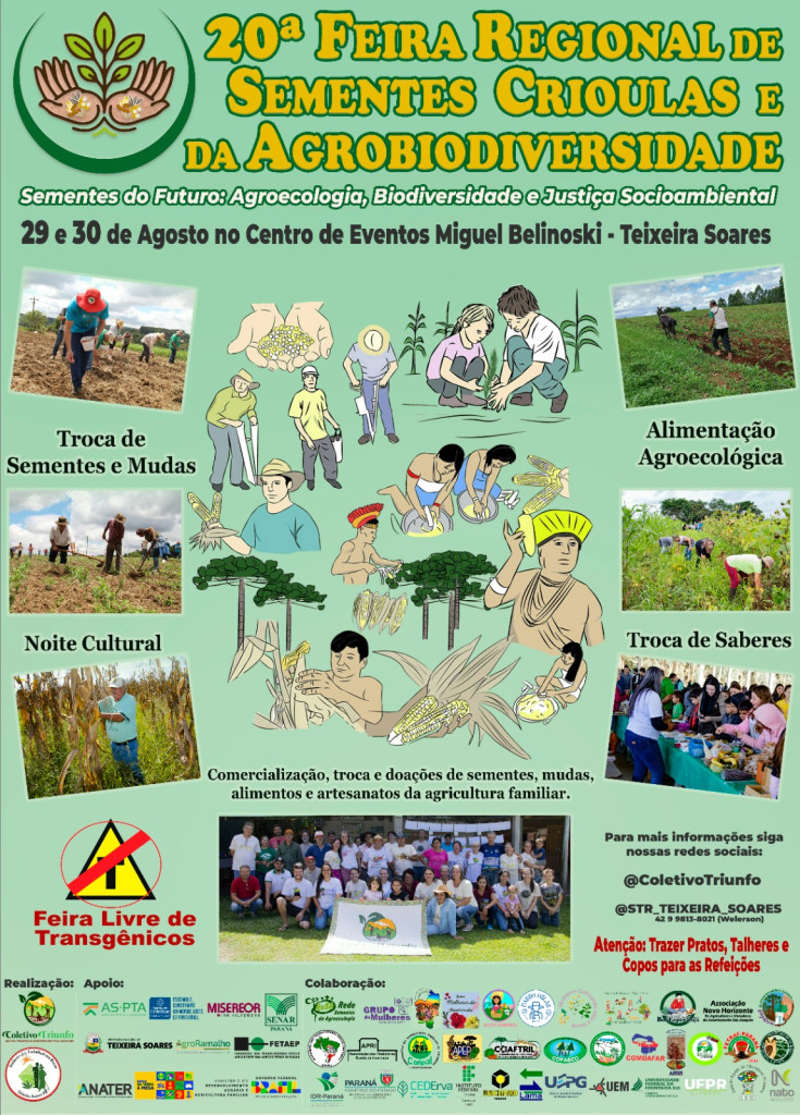 Nos dias 29 e 30 de agosto, o Centro de Eventos Miguel Belinoski, em Teixeira Soares, será novamente o espaço de encontro entre gerações. Agricultoras e agricultores familiares, estudantes, pesquisadoras e comunidades se reúnem em defesa das sementes crioulas e da agrobiodiversidade, da promoção da agroecologia e da partilha de saberes.