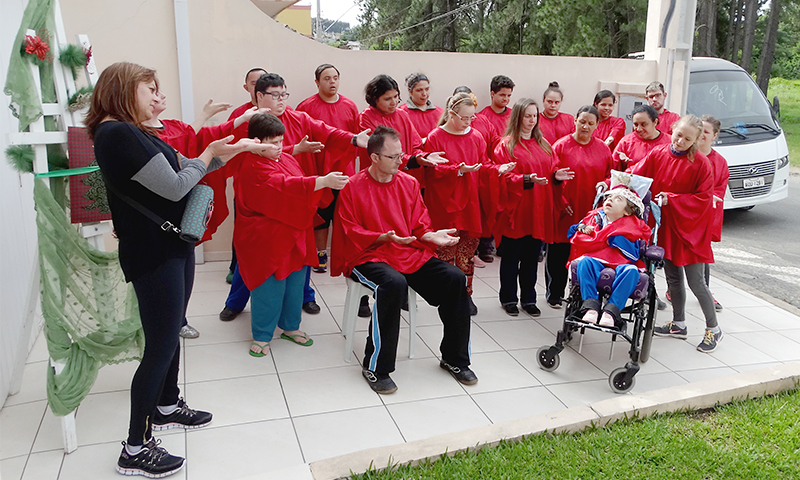 Os alunos de Educação Especial da APAE – do EJA (Educação de Jovens e Adultos) se apresentaram em frente à sede da Gazeta como forma de agradecimento ao apoio que é dado à APAE de Palmeira. Com os alunos caracterizados com vestimentas de Natal, ensaiados pelas dedicadas professoras, entoaram uma linda canção, com uma belíssima coreografia, lembrando que a solidariedade, o amor, a esperança devem estar presentes em cada pessoa.