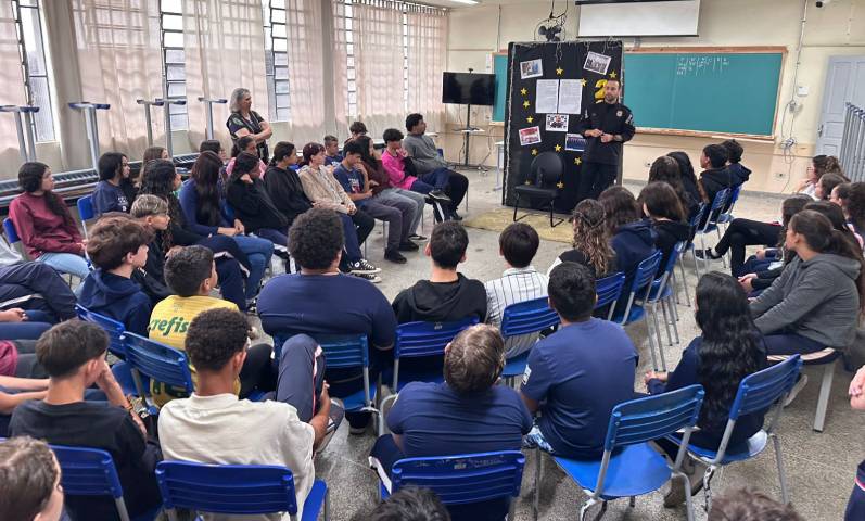 Os estudantes aproveitaram a oportunidade para tirar dúvidas e apresentar diversas curiosidades sobre o funcionamento da Polícia Civil e o dia-a-dia da profissão.