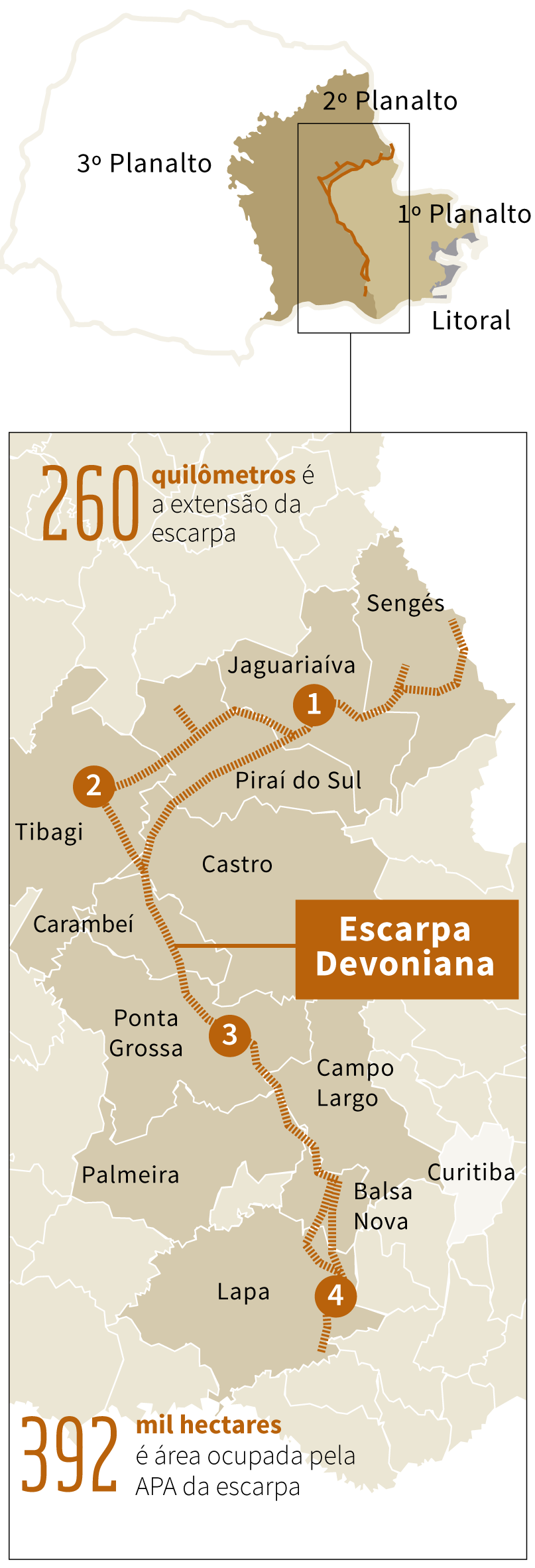 Na regulamentação, a APA da Escarpa Devoniana, que possui campos de cerrado, formações geológicas, cavernas, furnas, abismos e áreas de mata nativa passaria de 392 mil hectares protegidos para 126 mil hectares.