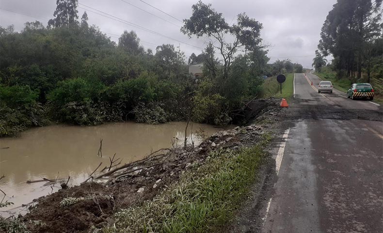 As chuvas causaram estragos em rodovias estaduais no final de semana. Em Jaguariaíva houve o rompimento do pavimento da PR-151 na altura do km 214. O tráfego de veículos está sendo desviado por rotas alternativas. Já a PR-170, entre Guarapuava e o distrito de Entre Rios, registrou um escorregamento de terra em um dos acostamentos. O tráfego permanece aberto no local, mas em apenas uma faixa.