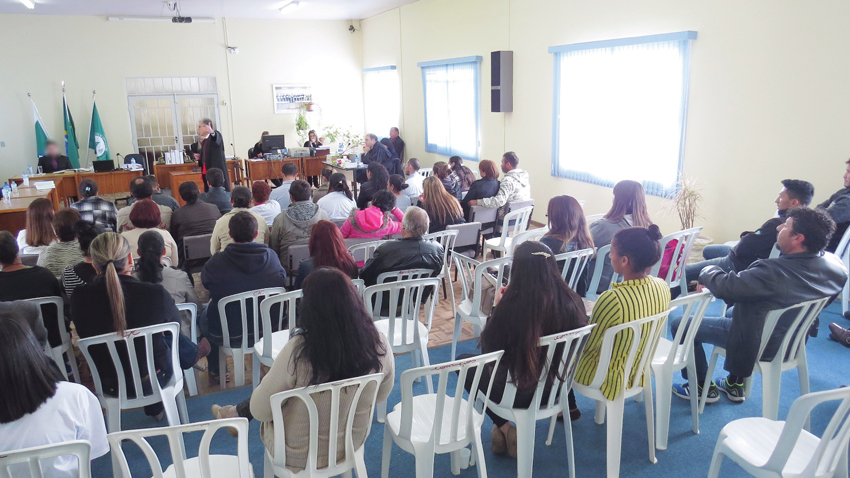 Os trabalhos iniciaram por volta das 9h45 com o pronunciamento da MM Juíza da Comarca de Palmeira Dra. Claudia Sanine Ponich Bosco, que justificou o motivo do Júri estar sendo realizado na cidade de Porto Amazonas. Segunda ela, a atitude foi tomada para poder envolver a população nas atividades da justiça, sendo que muitas vezes as pessoas deixam de participar devido ao deslocamento que teriam que fazer ate a sede da comarca, além da população saber como a justiça funciona. A Juíza foi muito didática em cada etapa do julgamento, onde explicava o que aconteceria de maneira bem simples para a platéia. Segundo a Magistrada os próximos casos do gênero que envolva Porto Amazonas serão todos julgados na cidade.
