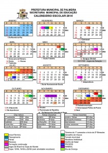 A Secretaria de Educação da Prefeitura de Palmeira definiu o Calendário Escolar de 2014 da rede pública municipal com 200 dias letivos, exatamente divididos em 100 dias no primeiro semestre e outros 100 dias no segundo semestre do ano. O calendário prevê o início das aulas nas escolas municipais no dia 5 de fevereiro. Os professores, no entanto, estarão participando de atividades de formação no dia 3 e de planejamento no dia 4. O término do ano letivo está previsto para o dia 17 de dezembro.