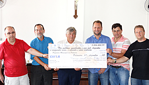 Em ato simbólico realizado na sexta-feira (11), na Câmara Municipal, com a presença do prefeito Edir Havrechaki (PSC) e do vice-prefeito Marcos Levandoski (PT), a Prefeitura de Palmeira recebeu R$ 3.506.250,99. O recurso é proveniente de fundo especial do Legislativo criado em 2011 para construção sede própria, que foi extinto em setembro deste ano. Com o valor, a Prefeitura deve realizar obras, como a pavimentação de ruas e construção de praças em bairros da cidade.