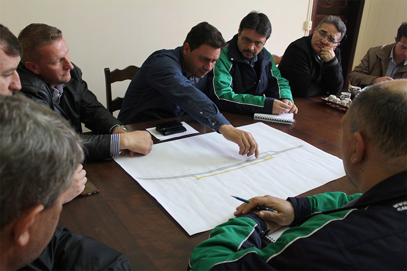 Na última terça-feira (1º) representantes da Concessionária Caminhos do Paraná e do Departamento de Estradas de Rodagem do Estado do Paraná (DER/PR) estiveram na Prefeitura de Palmeira reunidos com o prefeito Edir Havrechaki (PSC), para apresentar o projeto de construção da rotatória na localidade de Colônia Maciel. Os representantes e equipe técnica da Caminhos do Paraná, Ricardo Marcel e Antonio Marçal e do DER-PR, Rozenildo Cidade Matos e Marcos Maia trouxeram um projeto com a previsão das obras, além disso, ouviram as demandas do poder executivo e legislativo de Palmeira durante a reunião. O projeto apresentado prevê uma marginal no sentido Palmeira-Irati e uma rotatória para ampliar a segurança dos motoristas que entram ou saem das comunidades.