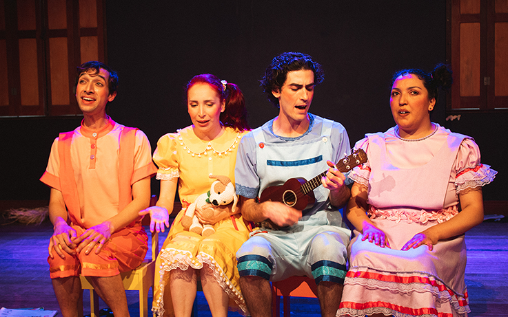 “Carmela, Caramelo e Remela” é baseada no livro “Quando eu era Pequena” da poetisa Adélia Prado, que evoca a infância da escritora mineira. A diretora Giovana de Liz conta que o texto foi construído coletivamente e explora o espírito curioso e imaginativo das crianças. “O espetáculo começa com quatro crianças brincando em uma biblioteca. Quando encontram o livro da Carmela, que é o pseudônimo da Adélia Prado, resolvem cada uma virar Carmelas e viver uma parte do livro”, explica.