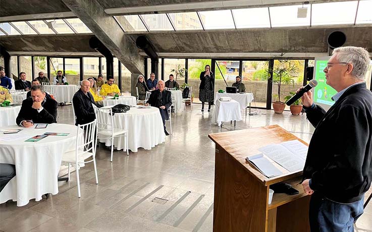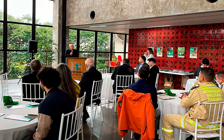 Representantes de diversas instituições participaram nesta terça-feira (04) do lançamento da Campanha Estadual de Prevenção e Combate a Incêndios Florestais 2024, na sede do IDR-Paraná, em Curitiba. Neste ano ela prevê distribuição de material gráfico e digital para disseminar informações e conscientizar as pessoas sobre os danos causados por um incêndio florestal. Também são indicadas as ações que podem provocar um incêndio e o que deve ser feito quando uma pessoa avistar um foco.