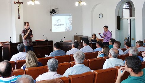 Com o plenário praticamente lotado, cerca de 70 pessoas compareceram à audiência pública e ouviram, primeiro, explanações de representantes da companhia, que apresentaram alguns detalhes sobre a proposta feita pela Sanepar à Prefeitura, com prazo de duração de 30 anos, prorrogáveis por igual período.
