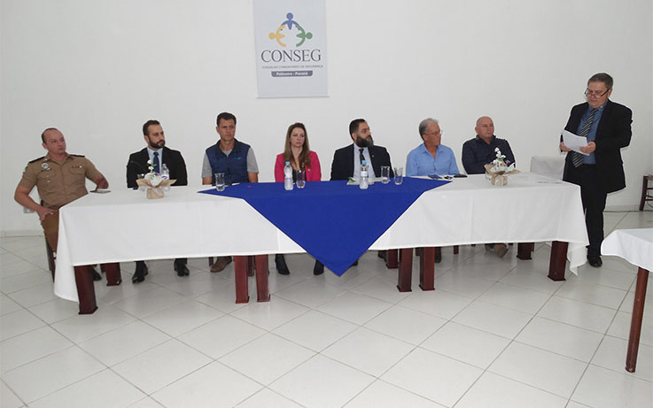 Diversas autoridades presentes no evento, usaram da palavra e destacaram questões relacionadas a segurança pública e sobre a atuação do Conseg na comunidade palmeirense. Também foi destacada a presença da diretoria eleita do Conseg, e do coordenador da Ceconseg Estadual, Cel. Chehade Elias Geha, também estiveram presentes na solenidade, o prefeito Municipal Sérgio Belich, vereador Gilberto Rogalski, representando a Câmara Municipal de Palmeira, o Promotor de Justiça da Comarca, Antonio Carlos Nervino, o comandante da 3ª Cia da Polícia Militar de Palmeira, Rafael Mendes Dambros, o delegado da 40ª Delegacia de Polícia Civil de Palmeira, Rodrigo Siqueira, o comandante do 2º Pelotão da 4ª Cia da Polícia Militar Ambiental, Subtenente Celso Tzeciuk, o Cabo Max Vida Santos, da 2ª Seção do Corpo de Bombeiros de Palmeira, a presidente do Rotary Club de Palmeira, Cristiane Kapp, da gerente do Banco do Brasil, Vanessa Mota de Matos, o presidente da Associação Comercial e Industrial de Palmeira – ACIP, Wagner Aniskiewski, a Diretora do departamento de Segurança e Trânsito da Prefeitura, Sabrina Ristow, o presidente da Associação de Moradores do Jardim Cristine Leandro Vardenski, e o presidente da Associação de Moradores do Rocio 1 e de integrantes da imprensa.