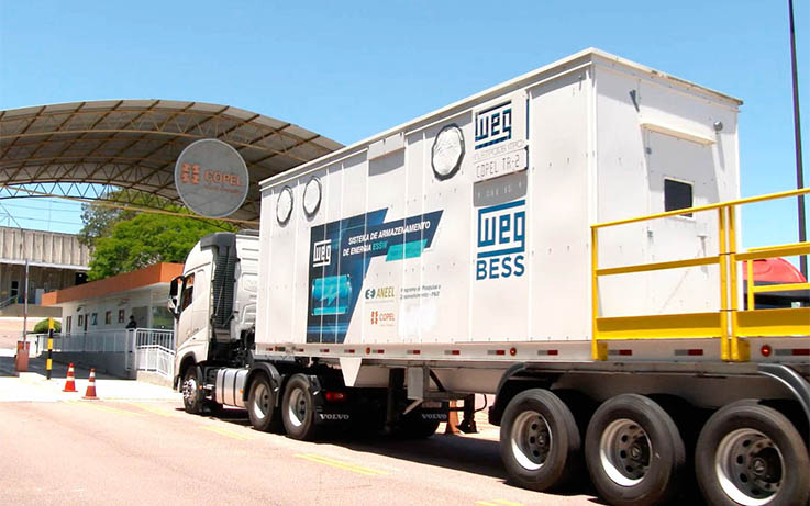 Uma das fronteiras mais desafiadoras do fornecimento de energia elétrica em grande escala, o armazenamento de energia é o foco de um novo projeto da Copel. A companhia está prestes a colocar em funcionamento um sistema móvel de armazenamento de energia de grande porte. Com 1 MW de potência instalada, a estrutura é formada por um conjunto de baterias e um transformador, instalados em duas carretas que podem ser deslocadas para atender qualquer cidade do Paraná.