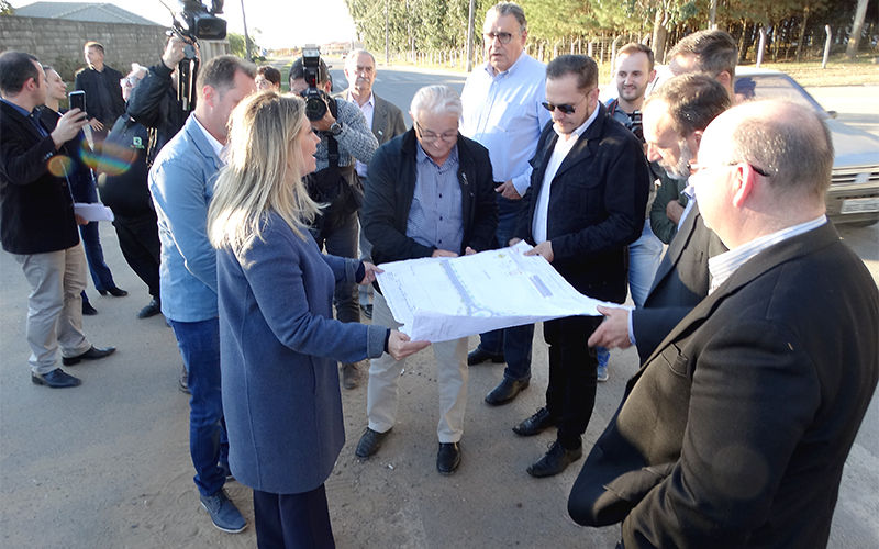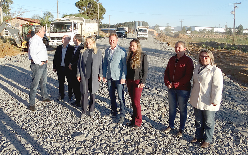 Depois de participar de uma audiência pública em Ponta Grossa sobre o novo modelo de concessão rodoviária, na terça-feira (7), a governadora Cida Borghetti (PP) esteve em Palmeira no final da tarde acompanhada do Secretario de Infraestrutura e Logística Abelardo Lupion para verificar o andamento das obras da Avenida Daniel Mansani.