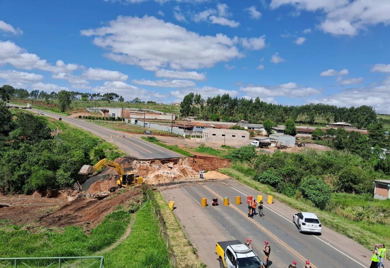 No final da tarde de sábado (07), a rodovia cedeu na altura do km 214, local onde um bueiro tubular metálico de 3,5 m recebia o fluxo de água vindo do Rio Capivari, cujo volume aumentou excessivamente devido às chuvas.
