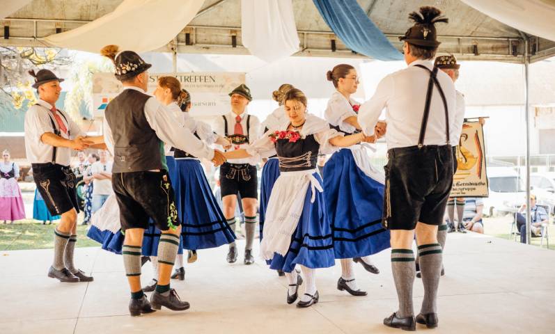 Scheunentanz: Trazendo um toque moderno e inclusivo enraizado na tradição, o Grupo de Dança em Linha Scheunentanz (Dança de Celeiro) contagiou o público com seu ritmo dinâmico. Sua performance reforçou o objetivo do Volkstanztreffen de celebrar a diversidade cultural e a vida comunitária, mesmo em evoluções de estilos.