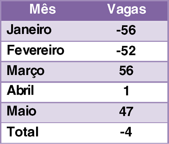 Já os setores da indústria e de serviços registraram mais demissões do que contratações em maio. O primeiro teve fechados dez postos de trabalho, enquanto o segundo cancelou uma vaga de emprego formal.