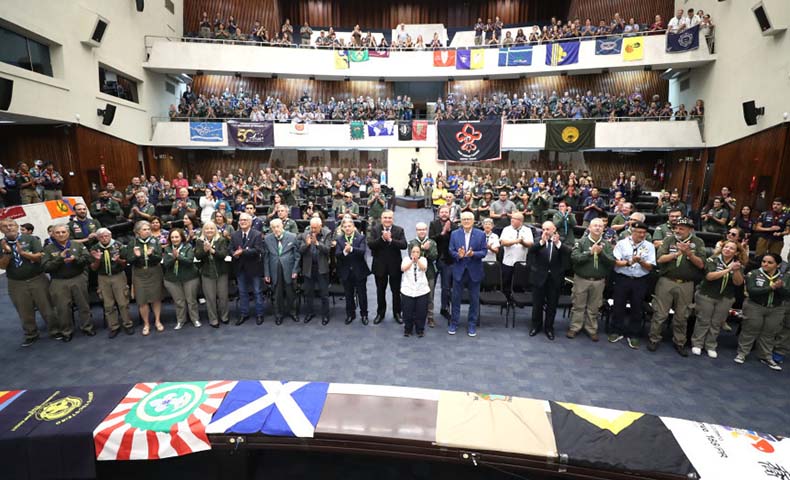 Um momento marcante para o movimento escoteiro do país, que conta com mais de 90 mil participantes no Brasil, aconteceu na noite desta terça-feira (23), na Assembleia Legislativa do Paraná. Pioneiros, chefes, lobinhos e voluntários lotaram o Plenário para participaram de uma sessão especial, organizada pelo deputado Ney Leprevost (União), em celebração ao Dia Mundial do Escoteiro, os 86 anos da Modalidade do Ar e os 100 anos da União dos Escoteiros do Brasil (UEB).