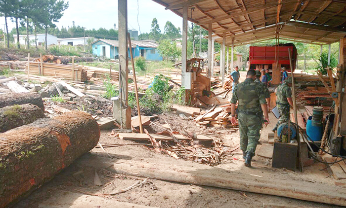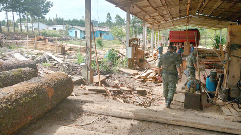 A equipe policial recebeu uma denúncia referente a corte de pinheiro araucária e recebimento em serraria no bairro Rocio II e realizou a vistoria, porém não encontrou madeira nativa no local, entretanto a mesma funcionava sem a devida licença ambiental de operação. Diante do fato foi lavrado Termo Circunstanciado de Infração Penal ao Juizado Especial Criminal da comarca de Palmeira. Será comunicado o IAP de Ponta Grossa para providencias administrativas cabíveis. Será comunicado o Escritório Regional do IAP de Irati para providências administrativas.