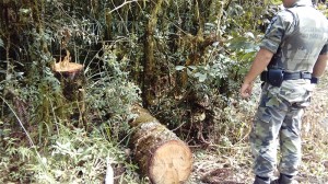 Depois foi até a localidade de Correias, onde realizou vistoria em propriedade rural e constatou o corte de 3 três pinheiros araucária, em área de floresta secundária em estágio avançado de regeneração do bioma mata atlântica. O proprietário não possuía autorização florestal, sendo orientado e advertido que a área deverá permanecer embargada. Será enviado cópia do Boletim de Ocorrência a Delegacia de Polícia Civil de Palmeira e ao IAP de Ponta Grossa para medidas penais e administrativas cabíveis.