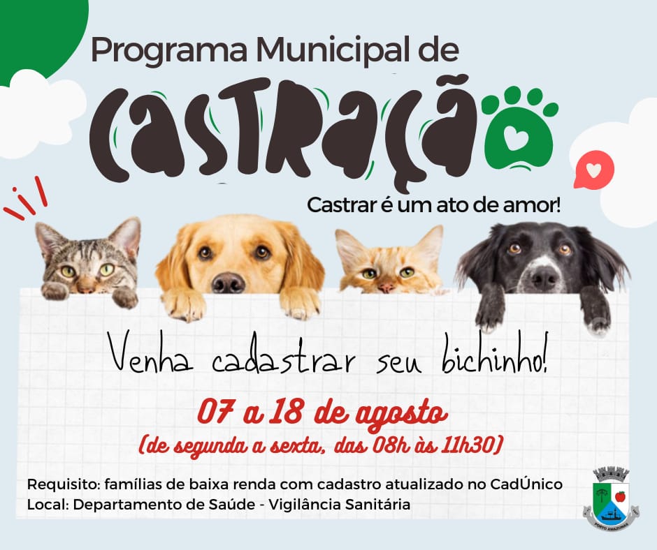 Para mais informações sobre o programa e os requisitos para a participação, a população pode entrar em contato com a Vigilância Sanitária Municipal. Não perca essa oportunidade de contribuir para o cuidado responsável com os animais de estimação!