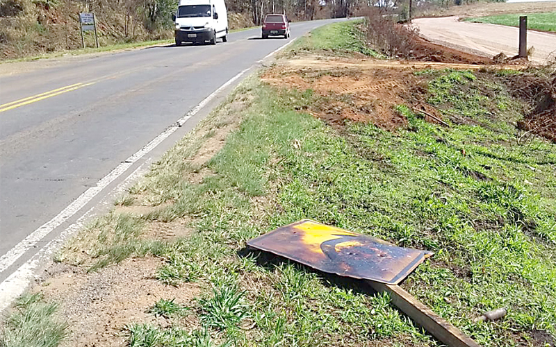 Sinalização vertical da PR-151 é destruída em trecho entre Ponta Grossa e Palmeira