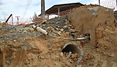 Rompimento de tubulação e cabos deixa Rocio 2 sem água e sem telefone