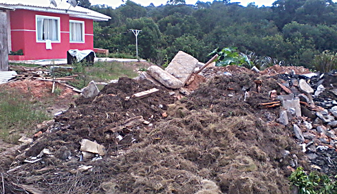 A reclamação encaminhada à Gazeta, acompanhada de fotografias, é com relação so despejo de entulhos, não só de construção, em uma área rua Thadeu Bruginski, quase às margens do rio Forquilha. Além de restos de materiais de construção e terra, também fora depositados ali restos de madeira, um colchão velho e outros materiais. A preocupação dos moradores é quanto à formação de um verto para insetos e animais nocivos, como ratos.