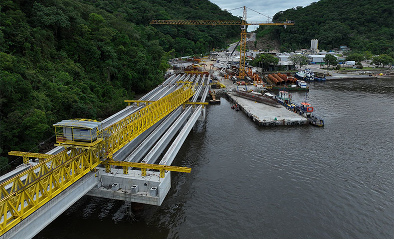 Traçado da Ponte de Guaratuba começa a ganhar forma com instalação de vigas longarinas