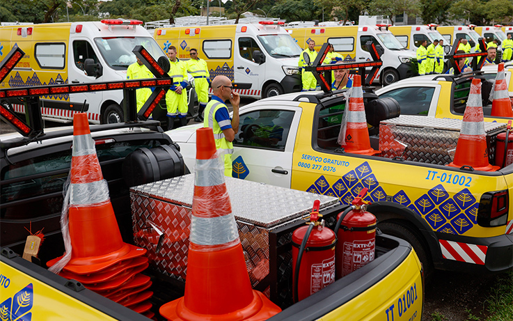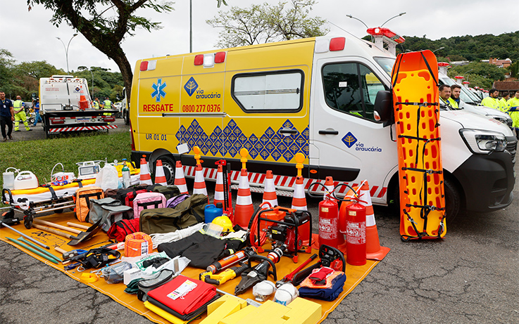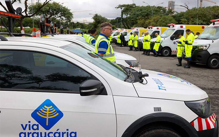 Entre os 37 veículos que a Via Araucária vai usar nas rodovias estão quatro guinchos pesados, seis guinchos leves, dois caminhões para resgate de animais, dois caminhões-pipa para apoio do Corpo de Bombeiros, dez ambulâncias (três equipadas com UTI) e 13 viaturas de inspeção de tráfego responsáveis pelo monitoramento terrestre diário de todo o trecho concedido.