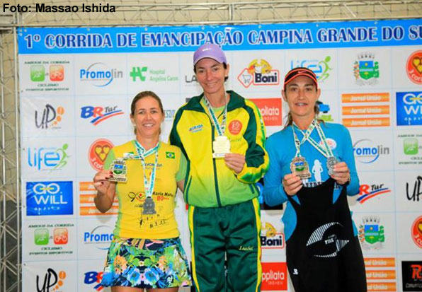 A palmeirense Isabel Cristina Correa conquistou a 1ª posição na categoria para mulheres de 45 a 49 anos, na Corrida de Emancipação de Campina Grande do Sul, realizada na manhã de domingo (8). O evento fez parte da celebração dos 64 anos do município. Mais de 800 atletas disputaram as provas de 10 e 5 quilômetros e o evento reuniu ao todo mais mil pessoas.