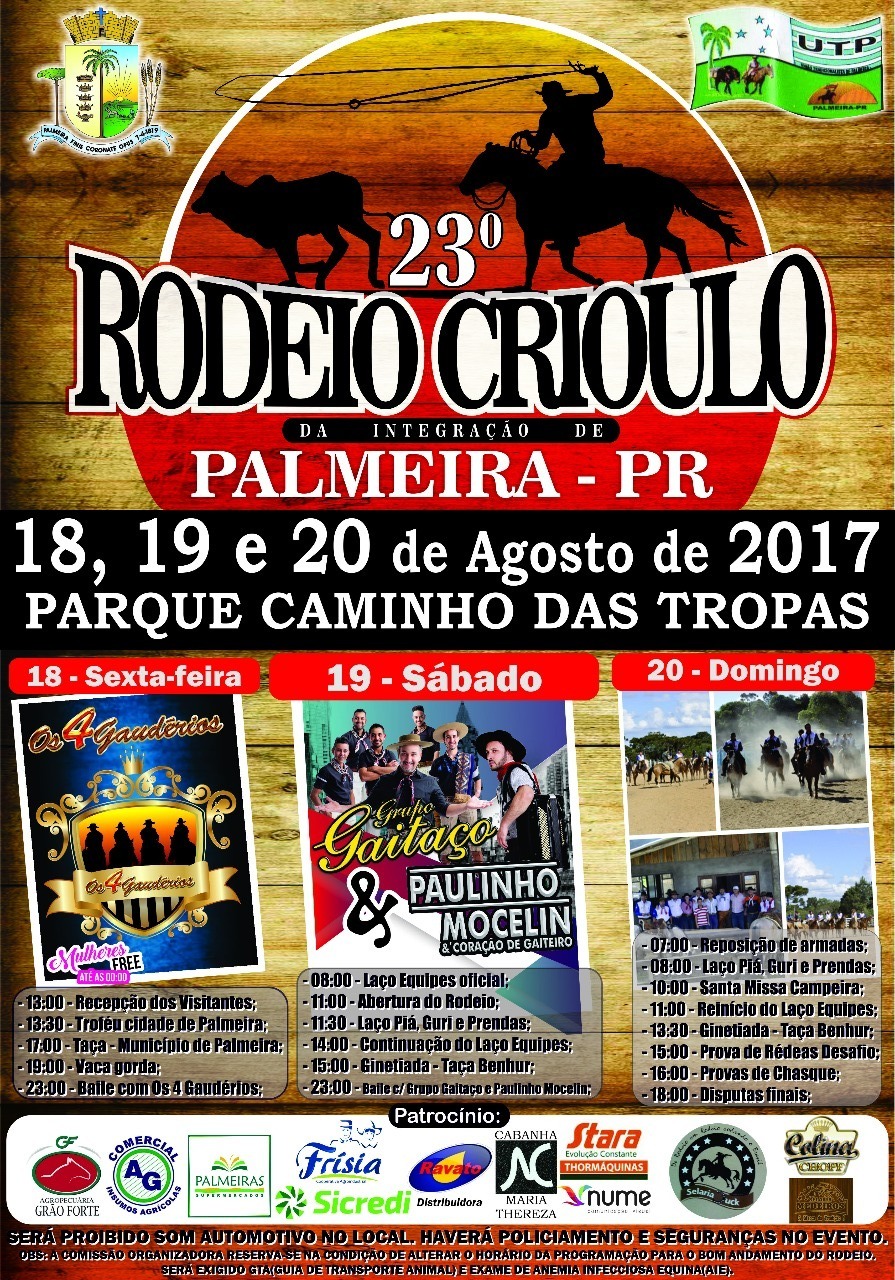 O patrão da UTP Maurício A. Stefanello disse que contou com o empenho e dedicação dos 6 CTGs de Palmeira que trabalharam realizar esse grande evento e está convidando todas as pessoas para prestigiarem o rodeio, que é tradicional e um dos maiores do Paraná. Maurício ressalta que é muito importante aos participantes o GTA/(Guia de Transporte Animal) e o Exame de Anemia Infecciosa Equina (AIE).