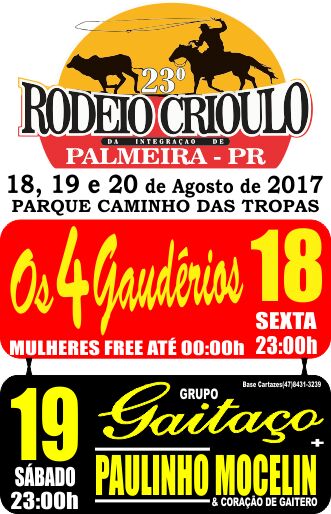 Na sexta-feira (18), a partir das 13 horas acontece a recepção aos visitantes, às 13h30 o Troféu Cidade de Palmeira, às 17 horas a Taça Município de Palmeira e às 19 horas a Vaca Gorda e encerrando o dia, o baile com o Grupo “Os 4 Gaudérios”.