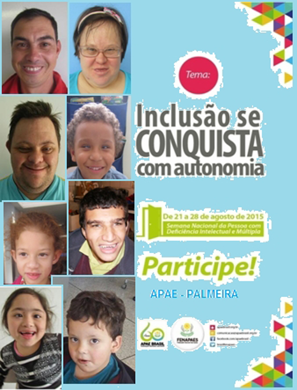 A partir de sexta-feira (21), a Associação de Pais e Amigos dos Excepcionais (APAE) de Palmeira desenvolve uma série de ações em comemoração à Semana Nacional da Pessoa com Deficiência Intelectual e Múltipla. Com o tema “Inclusão se conquista com autonomia”, a programação vai até o próximo dia 28, com envolvimento, de alunos, professores e funcionários da APAE, além de pais e da comunidade em geral.