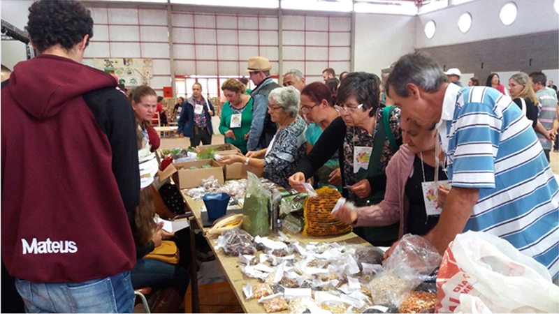 Na Feira de Saberes e Sabores que aconteceu durante os três dias em paralelo ao encontro, com a participação de guardiões das sementes crioulas ondem tiveram a participação ativa em intercâmbiar as suas sementes em trocas, comercialização e o mais rico a troca do conhecimento estratégico de conservar e produzir suas sementes entre os participantes, mostrando experiências e técnicas adotadas em suas propriedades que realizam no dia a dia em produzir e conservar a agrobiodiversidade.