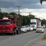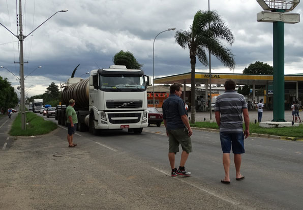 Os caminhoneiros que transitavam pelo trecho no momento da manifestação tiveram que estacionar seus caminhões em frente ao Ginásio. Veículos leves, ônibus de passageiros e caminhões carregados com cargas vivas são liberados para seguir viagem.