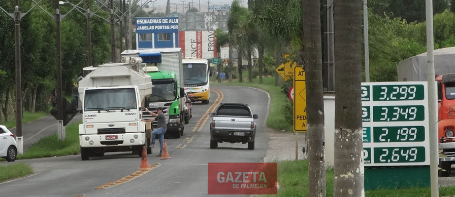 Pelo terceiro dia seguido o trânsito de caminhões na PR 151 ficou bloqueado no trecho em frente os Ginásio de Esportes Sebastião Amâncio. A ação já tinha acontecido na quarta-feira (25), do início da tarde até o início da noite, na quinta-feira (26), desde o final da tarde até a noite, e voltou a se repetir na tarde desta sexta-feira (27). Neste terceiro dia de manifestação em Palmeira, professores da rede estadual de ensino também participaram da ação.