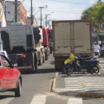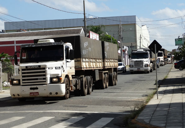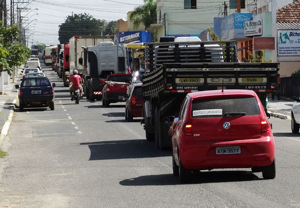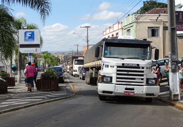 Caminhoneiros em manifestação realizam ‘buzinaço’ em ruas centrais da cidade