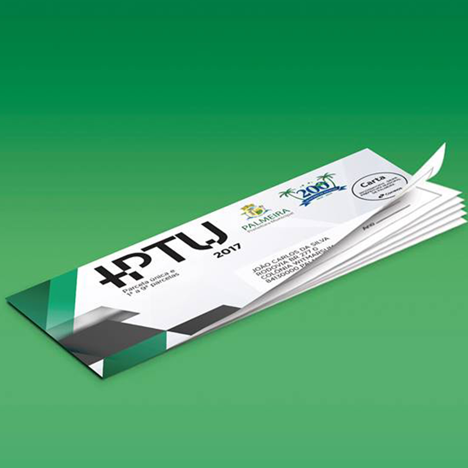 As guias de pagamento também podem ser obtidas pela internet, acessando a página inicial do site da Prefeitura de Palmeira (www.palmeira.pr.gov.br), entrando no link ‘IPTU 2017 – Imprimir Guia’, localizado na lateral direita da página, e na sequência seguir as instruções que aparecem na tela.