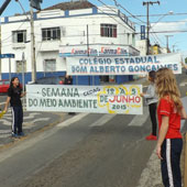 Passada a semana de atividades internas no colégio, na segunda-feira (8) alguns alunos foram até o semáforo da rua Conceição, acompanhados pelas professoras Marcia e Aline, onde expuseram faixas, cartazes, entregaram panfletos e pequenas porções de sementes de flores com mensagens.