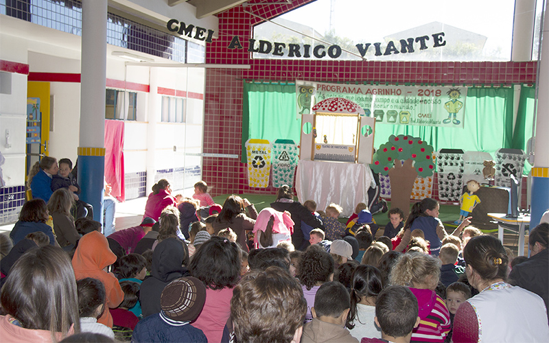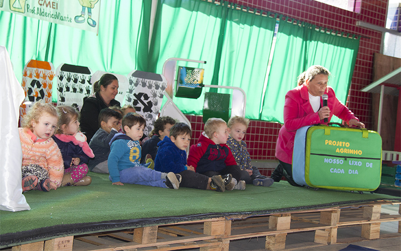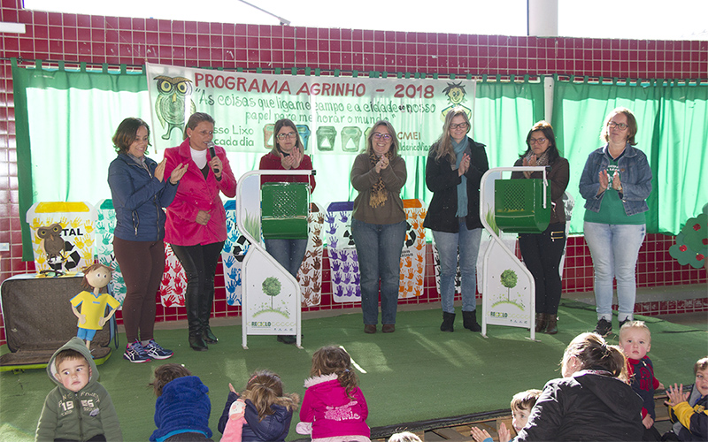 O evento de entrega das lixeiras contou com diversas atividades. A primeira ação foi à apresentação musical dos alunos da creche II, da professora Roberta Vantroba, que realizaram uma paródia da canção ‘Meu Lanchinho’, porém denominada ‘Meu Lixinho’. A música falou sobre a importância da separação e destinação correta do lixo reciclável.