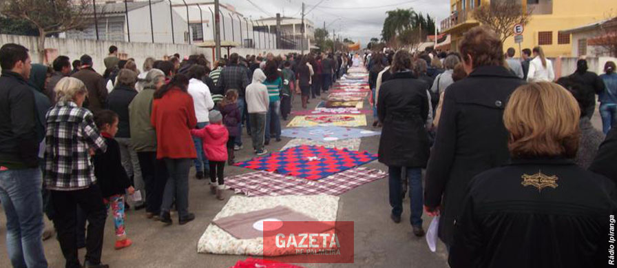 Neste ano, o tapete que tradicionalmente é feito com serragem, flores e tampinhas coloridas, foi construído com cobertores e edredons doados pela comunidade. Devido a isto, a procissão acabou em frente à sede da Ação Social Imaculada Conceição, como símbolo da caridade e solidariedade das doações.