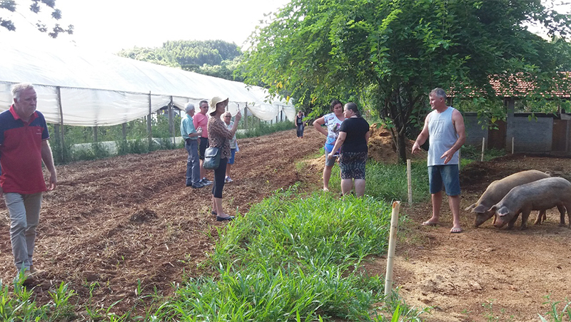 Na propriedade, os visitantes puderam visitar os sistemas de produção de hortaliças de diversas espécies em céu aberto e em estufas cobertas, além de criações como de suínos da raça Moura, sendo mais um investimento da família na produção de carne e fortalecimento da geração de renda familiar.
