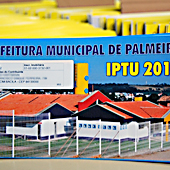 A Prefeitura de Palmeira deve receber entre fevereiro e março os carnês do Imposto Predial e Territorial Urbano (IPTU) de 2014 para distribuir aos contribuintes que são obrigados a pagar o tributo municipal. Este ano, o pagamento em cota única ou da primeira parcela, para quem optar pelo parcelamento, deve ser feito até o dia 10 de abril. Quem fizer a opção do pagamento em cota única será beneficiado com desconto de 10% sobre o valor do imposto.