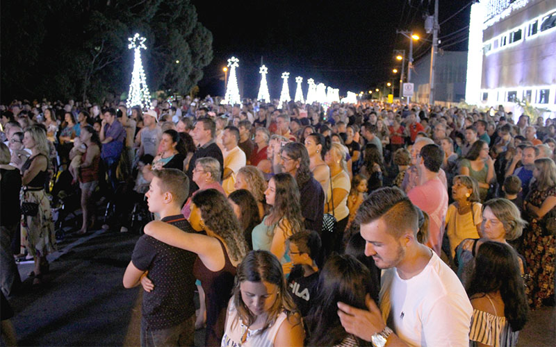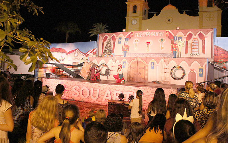 Na noite de quinta-feira (20) um grande público compareceu na Praça Marechal Floriano Peixoto para acompanhar o espetáculo “As Três Chaves do Natal”, encenado pelo Espaço Sou Arte. A chuva que atingiu o município fez com que a apresentação fosse atrasada em uma hora, porém o espetáculo foi realizado normalmente na sequência e mexeu com a emoção do público presente.