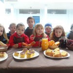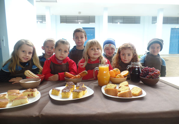 O cenário da atividade foi preparado com amostras de sementes e produtos da comunidade e um lanche especial com bolos de cenoura, laranja e fubá, além de suco de uva e laranja, foi distribuído aos presentes, relacionando o produto saído do campo ao produto disponível no mercado e o consumo.