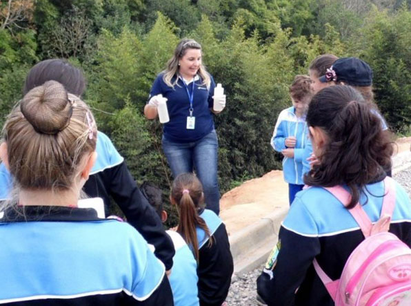 A Unidade de Educação Socioambiental da Sanepar utilizou material próprio para monitorar a qualidade da água e levou os alunos até as margens do rio Forquilha, que corta todo o perímetro urbano da cidade, para acompanhar a coleta de amostras e analisar as características do rio e de suas margens.