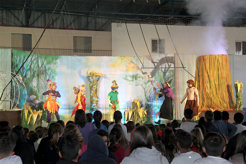 Centenas de estudantes de escolas municipais e estaduais estiveram no Ginásio Durval Antônio de Freitas (Central) na terça-feira (30), e acompanharam as duas exibições da peça “Num Reino não tão distante”.