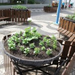 Floreiras de bancos da rua Conceição recebem novas plantas