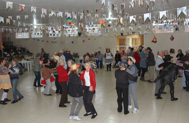 A chuva forte e o frio intenso de quinta-feira (24) não foram suficientes para diminuir o ânimo e a força de vontade dos participantes e profissionais de saúde que fazem parte do Grupo Hiperdia. Em uma festa julina realizada no Lar Acelino, na Colônia Francesa, estiveram presentes mais de 200 pessoas, que confraternizaram e se divertiram ao som de música típica da época.