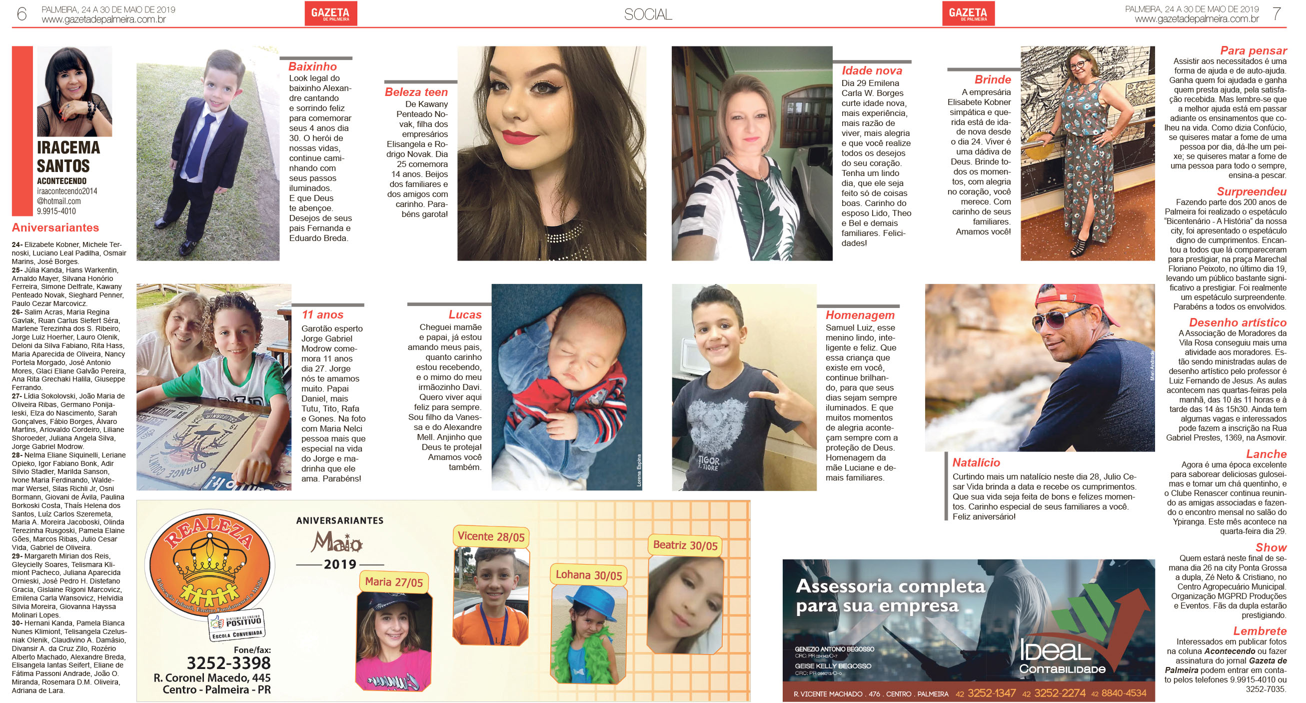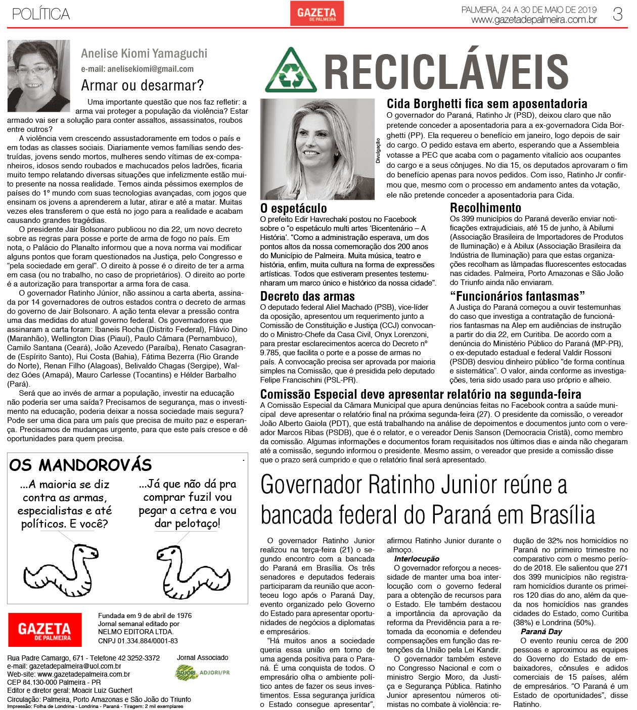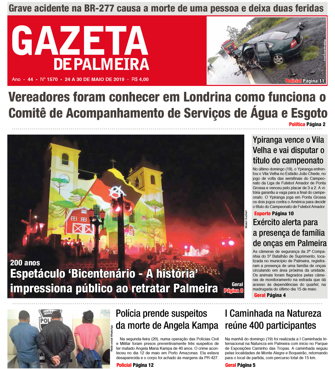 Leia a edição digital da Gazeta de Palmeira_Edição nº 1570_24 a 30/05/2019.