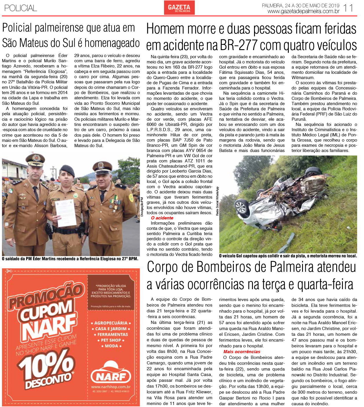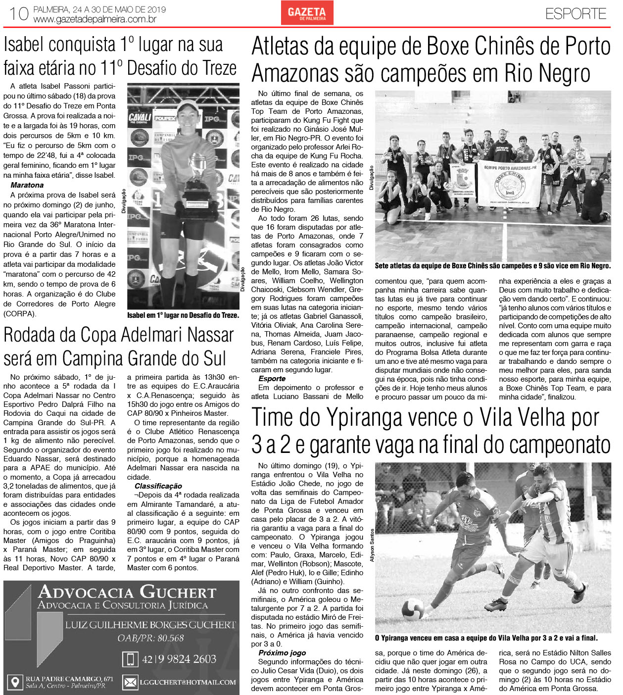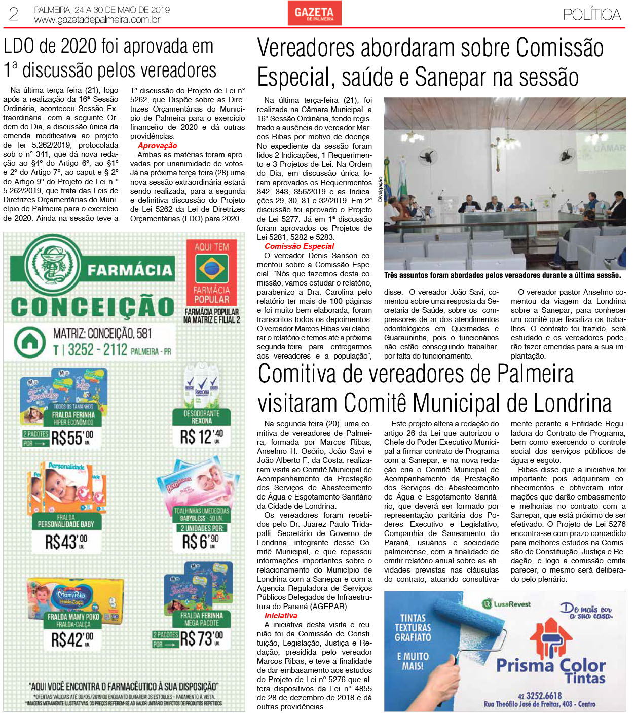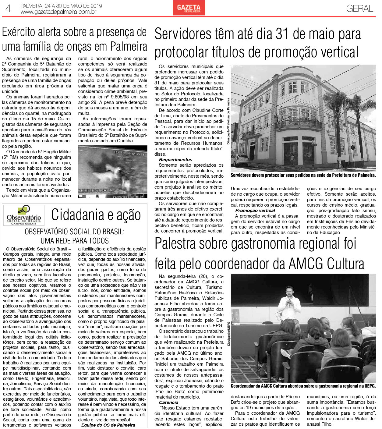 Leia a edição digital da Gazeta de Palmeira_Edição nº 1570_24 a 30/05/2019.